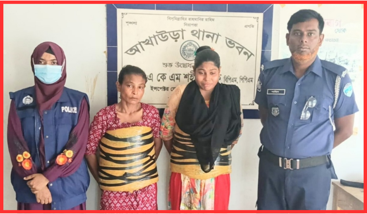 গ্রেফতারকৃতরা হলেন— উপজেলার দক্ষিণ ইউনিয়নের আবদুল্লাহপুর গ্রামের আনোয়ার হোসেনের স্ত্রী আমেনা আক্তার (২৪) এবং পৌর শহরের রাধানগর গ্রামের কামাল মিয়ার স্ত্রী ফুল বানু (৪২)।