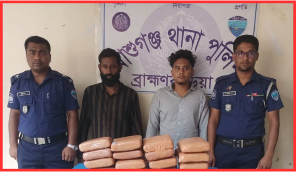 ২১ এপ্রিল ২০২৬ ভোর আনুমানিক ৫টা ১৫ মিনিটে আশুগঞ্জ থানা পুলিশের একটি দল গোপন সংবাদের ভিত্তিতে আশুগঞ্জ টোলপ্লাজা এলাকায় অভিযান পরিচালনা করে। অভিযানকালে দুইজন মাদক কারবারিকে গ্রেফতার করা হয়। এ সময় তাদের হেফাজত থেকে ২০ (বিশ) কেজি গাঁজা উদ্ধার করা হয়। উদ্ধারকৃত মাদকদ্রব্য বিধি মোতাবেক জব্দ তালিকা মূলে জব্দ করা হয়েছে।