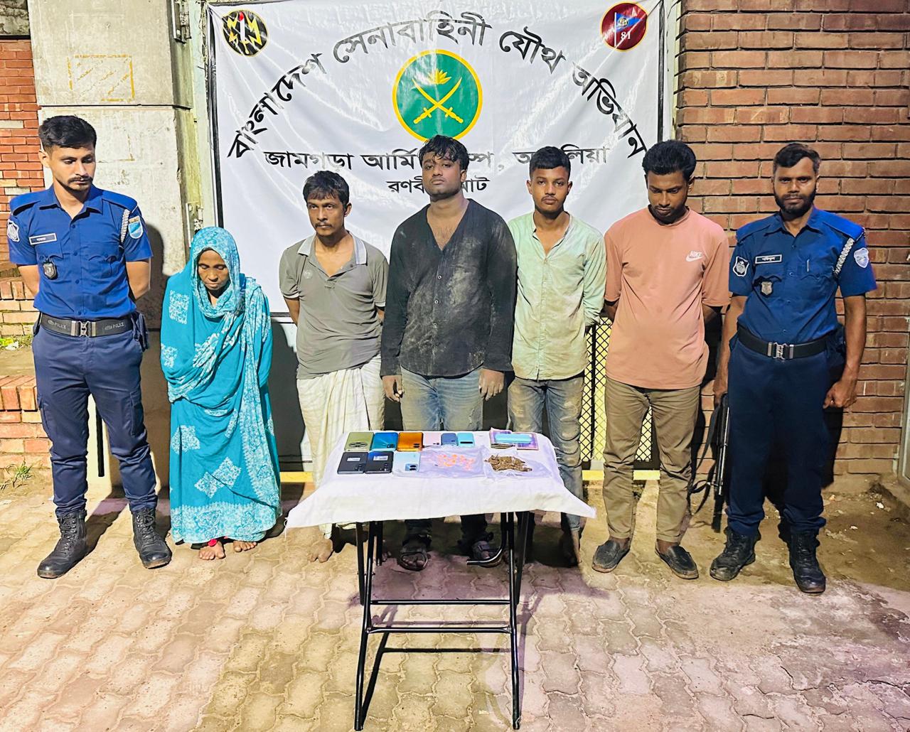 অদ্য ২০ সেপ্টেম্বর ২০২৫ রাত সাড়ে ১১টার দিকে আশুলিয়ার ঘোষবাগ ও নিশ্চিন্তপুর এলাকায় যৌথ বাহিনীর অভিযানে ইয়াবা ও গাঁজাসহ ৫ জন মাদক ব্যবসায়ীকে আটক করা হয়েছে।