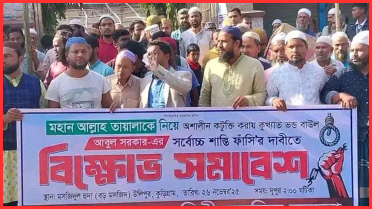 উলিপুরে বাউল আবুল সরকারের বক্তব্যে ধর্মীয় অনুভূতিতে আঘাত, বিক্ষোভ সমাবেশ