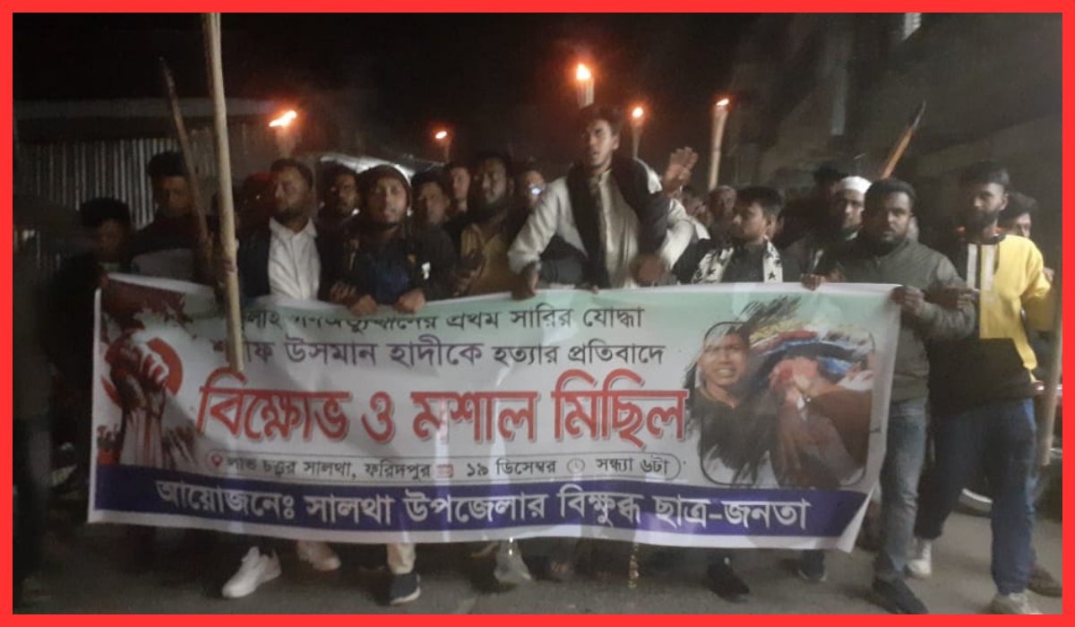 উসমান হাদী হত্যার প্রতিবাদে সালথায় বিক্ষোভ ও মশাল মিছিল