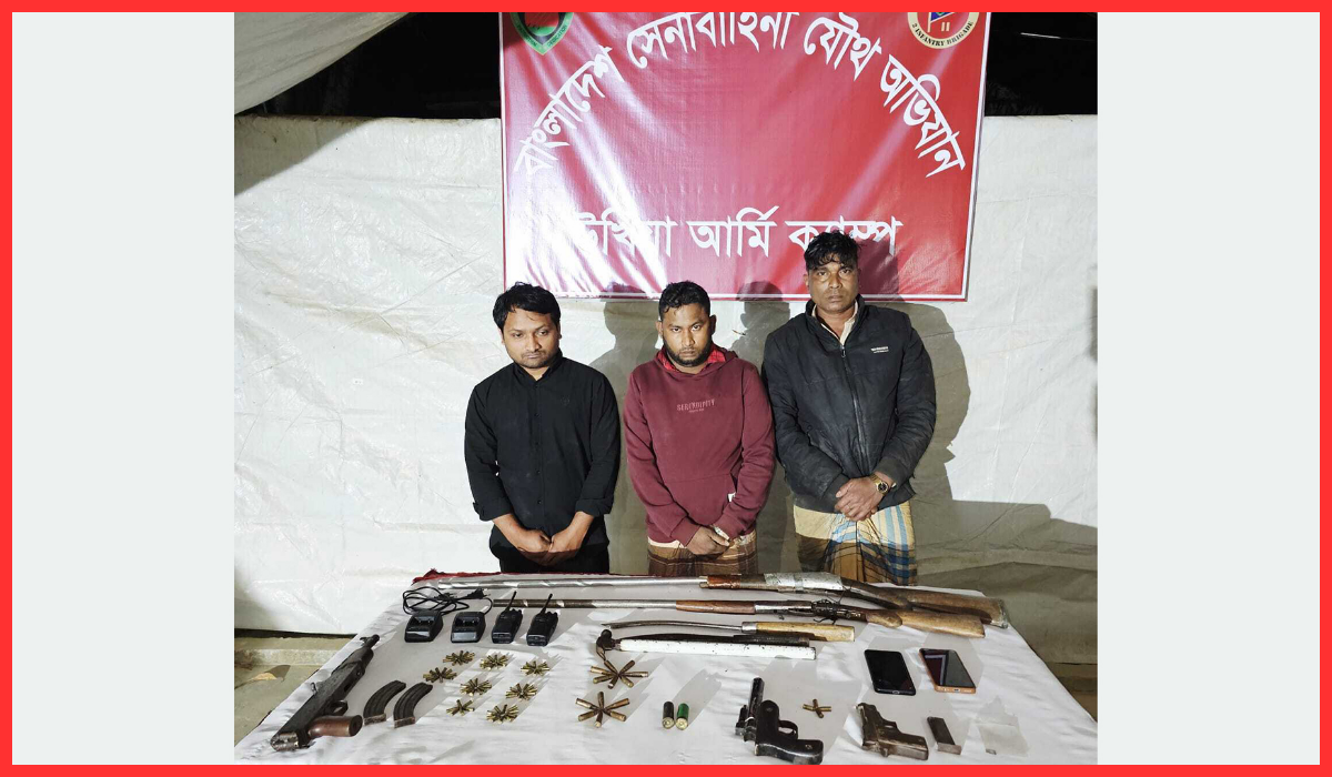 কক্সবাজারের উখিয়ায় দেশি-বিদেশি বিপুল পরিমাণ অস্ত্রসহ তিনজনকে আটক করেছে যৌথ বাহিনী। বুধবার (১১ ফেব্রুয়ারি) ভোরে উখিয়ার রোহিঙ্গা ক্যাম্পসংলগ্ন বালুখালী এলাকায় অভিযান চালানো হয়।