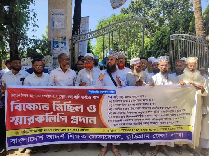 কুড়িগ্রামে শিক্ষকদের  বিক্ষোভ মিছিল ও স্মারকলিপি প্রদান