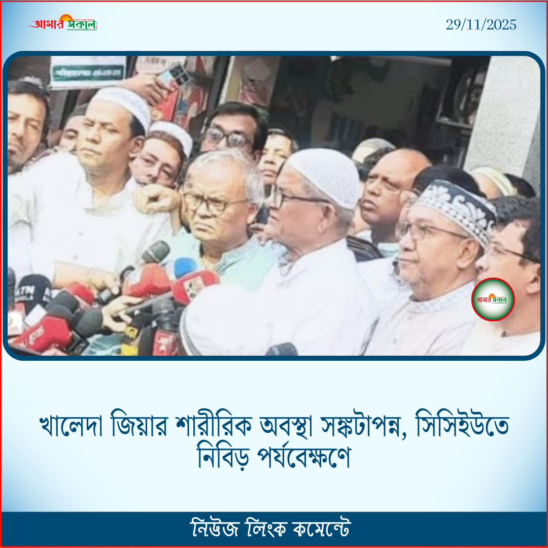 খালেদা জিয়ার শারীরিক অবস্থা সঙ্কটাপন্ন, সিসিইউতে নিবিড় পর্যবেক্ষণে - আমার সকাল ২৪ |