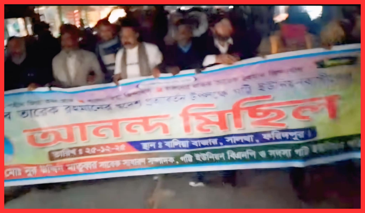 গট্টি ইউনিয়নে তারেক রহমানের স্বদেশ প্রত্যাবর্তন উপলক্ষে আনন্দ মিছিল
