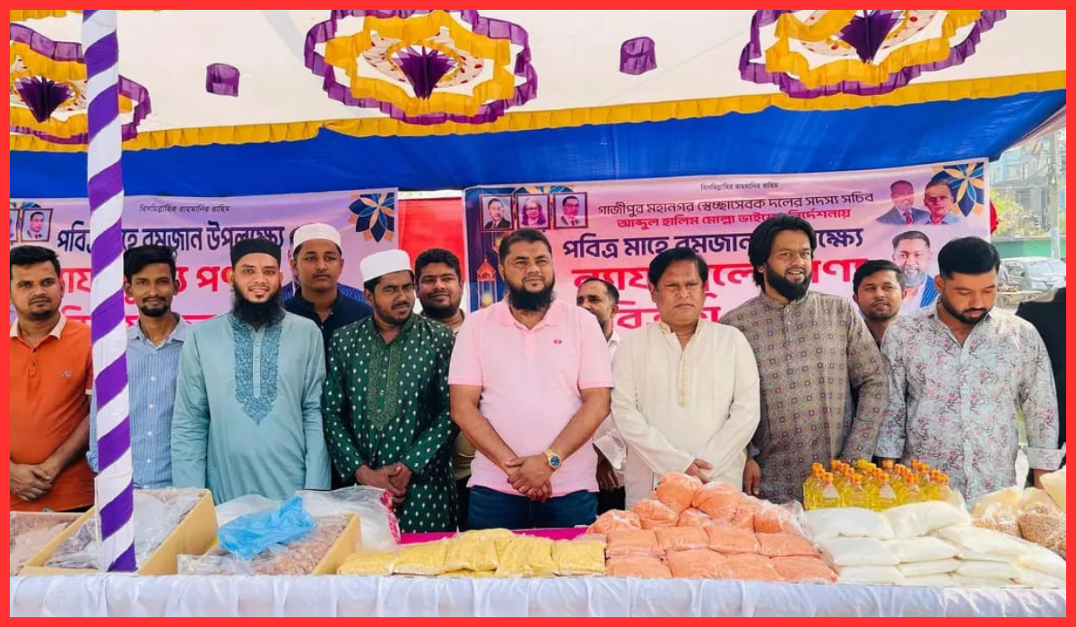 পবিত্র মাহে রমজান উপলক্ষে গাজীপুরের কাজিবাড়ি রোড, পুকুরপাড় এলাকায় ৫০ নং ওয়ার্ড স্বেচ্ছাসেবক দলের উদ্যোগে ন্যায্য মূল্যে পণ্য বিক্রয় কেন্দ্র উদ্বোধন করা হয়েছে।