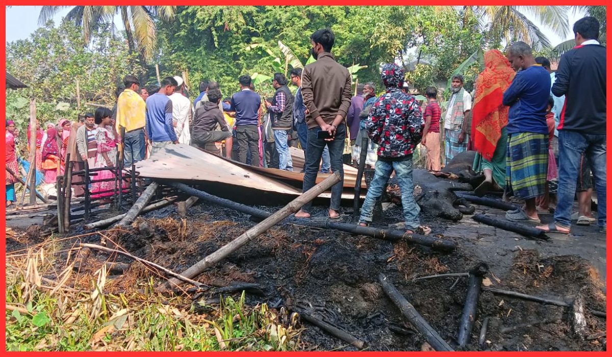 গুরুদাসপুরে কৃষকের বাড়িতে ভয়াবহ অগ্নিকাণ্ড পরিকল্পিতভাবে আগুন দেওয়ার অভিযোগ, ক্ষতি ১০ লাখ টাকা