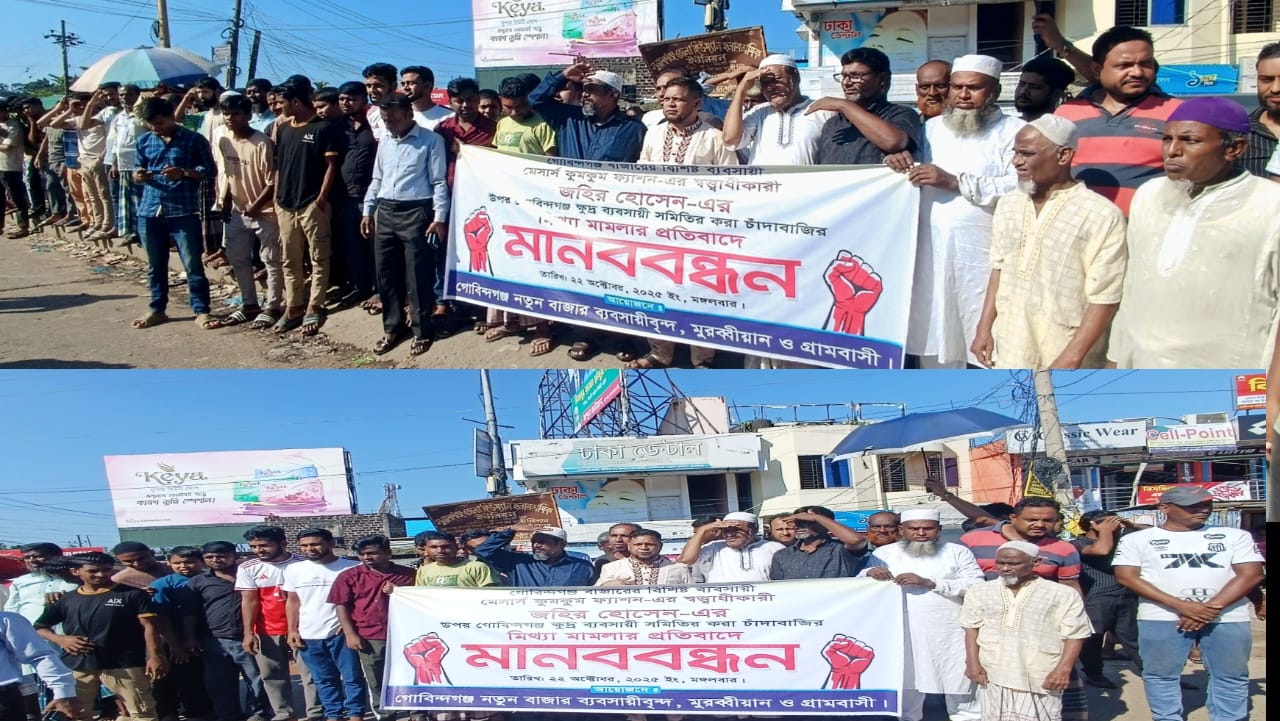 গোবিন্দগঞ্জ বাজারের বিশিষ্ট ব্যবসায়ী এবং মেসার্স কুমকুম ফ্যাশনের স্বত্বাধিকারী মো. জহির হোসেনের বিরুদ্ধে ক্ষুদ্র ব্যবসায়ী সমিতির দায়ের করা মিথ্যা চাঁদাবাজির মামলার প্রতিবাদে মানববন্ধন অনুষ্ঠিত হয়েছে।