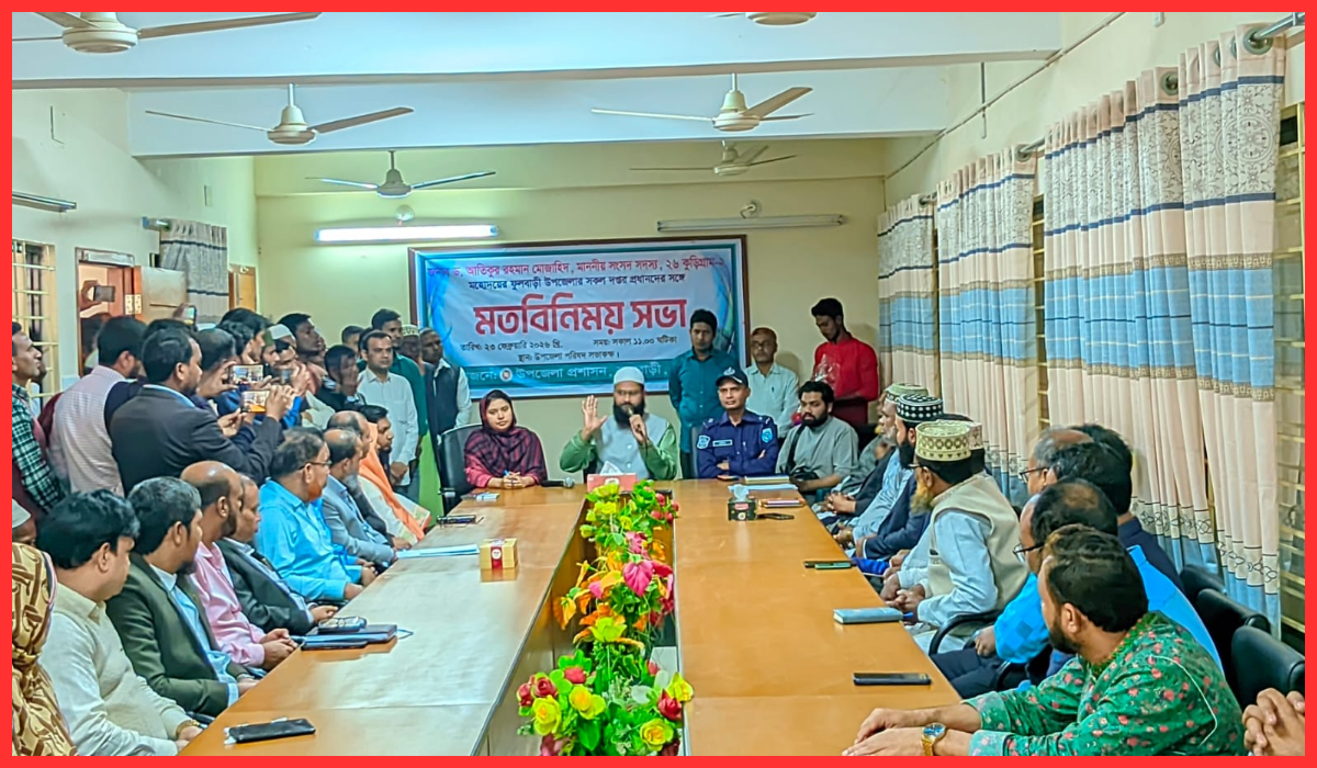 আলোচনা শেষে জনস্বার্থে কার্যকর ও সমন্বিত পদক্ষেপ গ্রহণের প্রত্যয় ব্যক্ত করা হয়। সংশ্লিষ্টরা আশা প্রকাশ করেন, এ ধরনের মতবিনিময় সভা স্থানীয় প্রশাসনের কার্যক্রমকে আরও গতিশীল, স্বচ্ছ ও জনমুখী করতে গুরুত্বপূর্ণ ভূমিকা রাখবে এবং ফুলবাড়ী উপজেলার সার্বিক উন্নয়নে ইতিবাচক প্রভাব ফেলবে।