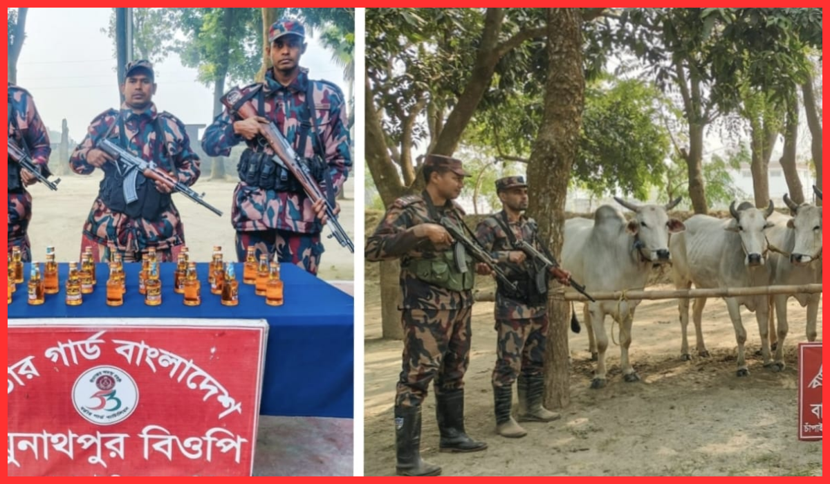 চাঁপাইনবাবগঞ্জ সীমান্তে ৫৩ বিজিবির অভিযানে ভারতীয় মদ ও ১১ গরু জব্দ