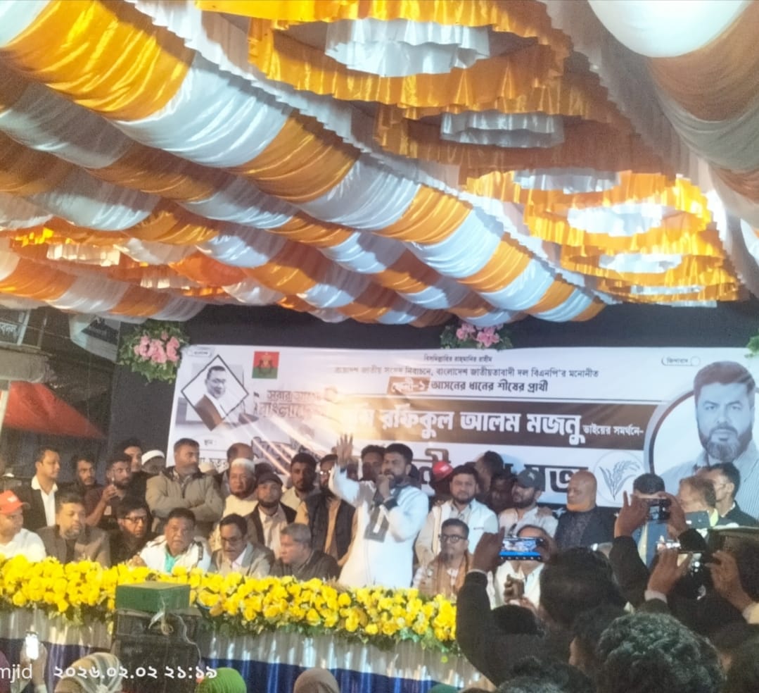 ফেনী জেলার ছাগলনাইয়ায় এক বিশাল জনসভা অনুষ্ঠিত হয়েছে, যেখানে প্রধান বক্তা ছিলেন বিএনপির ফেনী-১ আসনের প্রার্থী মুন্সি রফিকুল আলম মজনু।