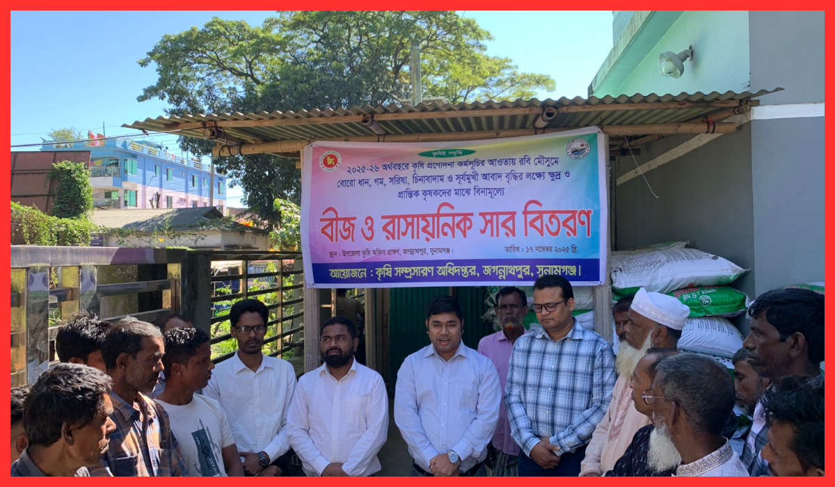 জগন্নাথপুরে ক্ষুদ্র ও প্রান্তিক কৃষকদের মাঝে বিনামূল্যে বীজ-সার বিতরণ