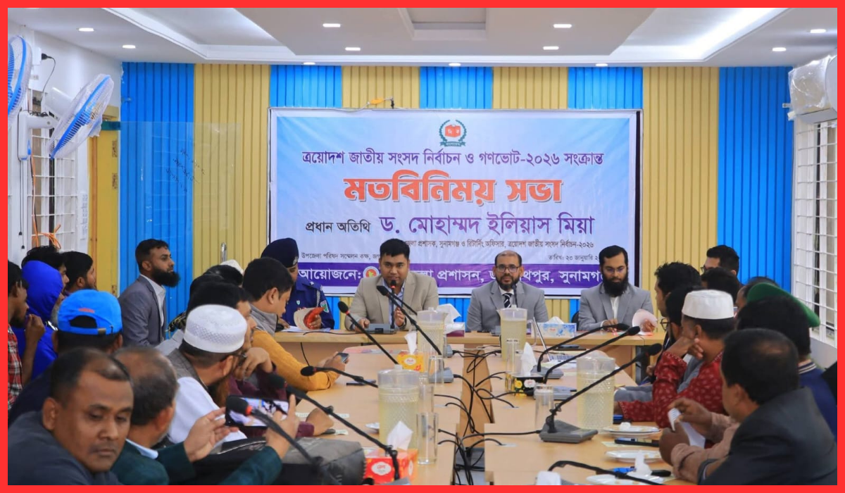 আসন্ন ত্রয়োদশ জাতীয় সংসদ নির্বাচন ও গণভোটকে সামনে রেখে গণভোটের পক্ষে জনসচেতনতা ও অংশগ্রহণ বাড়াতে সুনামগঞ্জের জগন্নাথপুরে এক মতবিনিময় সভা অনুষ্ঠিত হয়েছে। শুক্রবার দুপুরে উপজেলা প্রশাসনের উদ্যোগে উপজেলা সম্মেলন কক্ষে এ সভা অনুষ্ঠিত হয়।