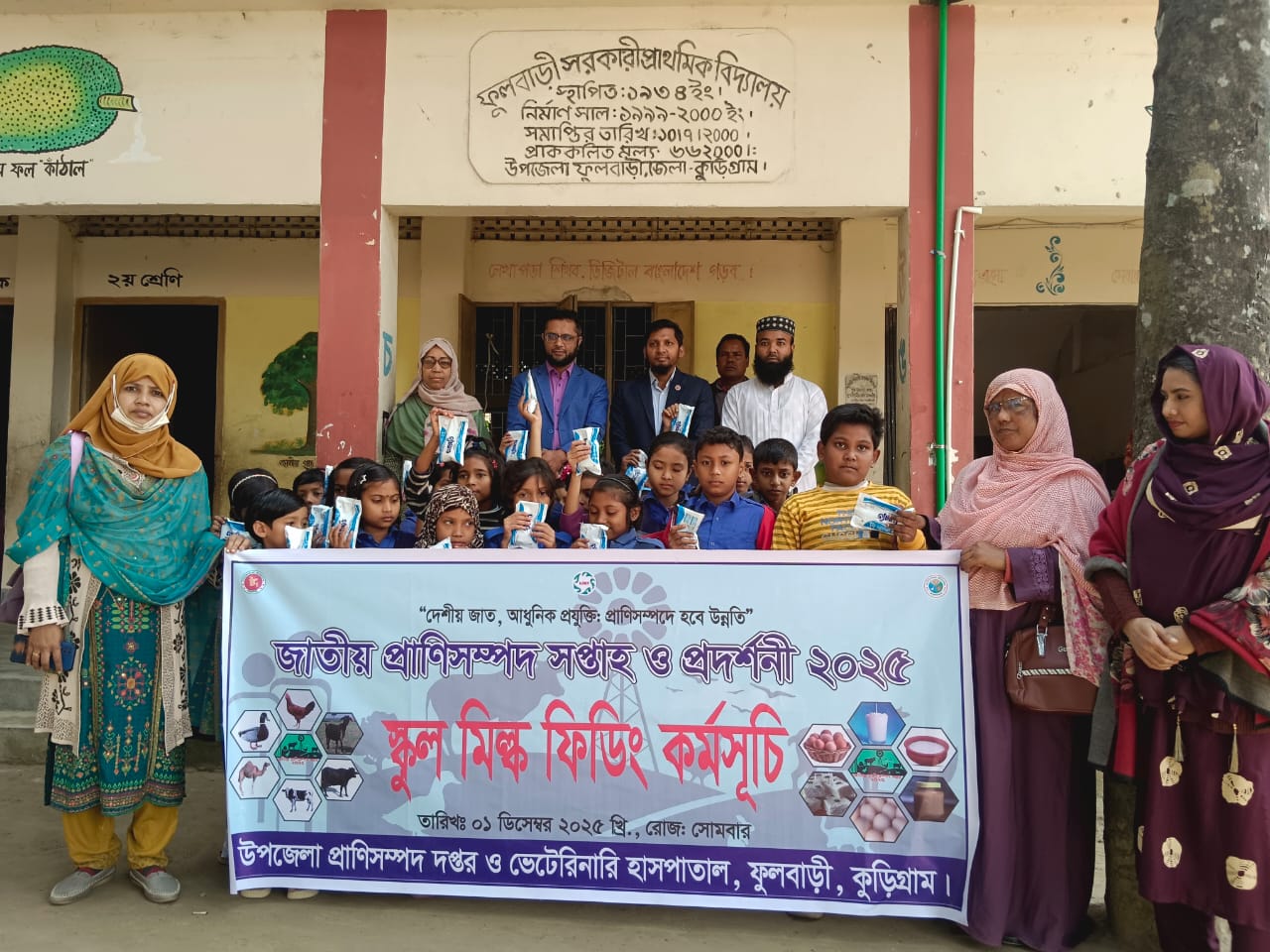 জাতীয় প্রাণিসম্পদ সপ্তাহ উপলক্ষে ফুলবাড়ীতে শিক্ষার্থীদের পুষ্টিবর্ধক দুধ বিতরণ