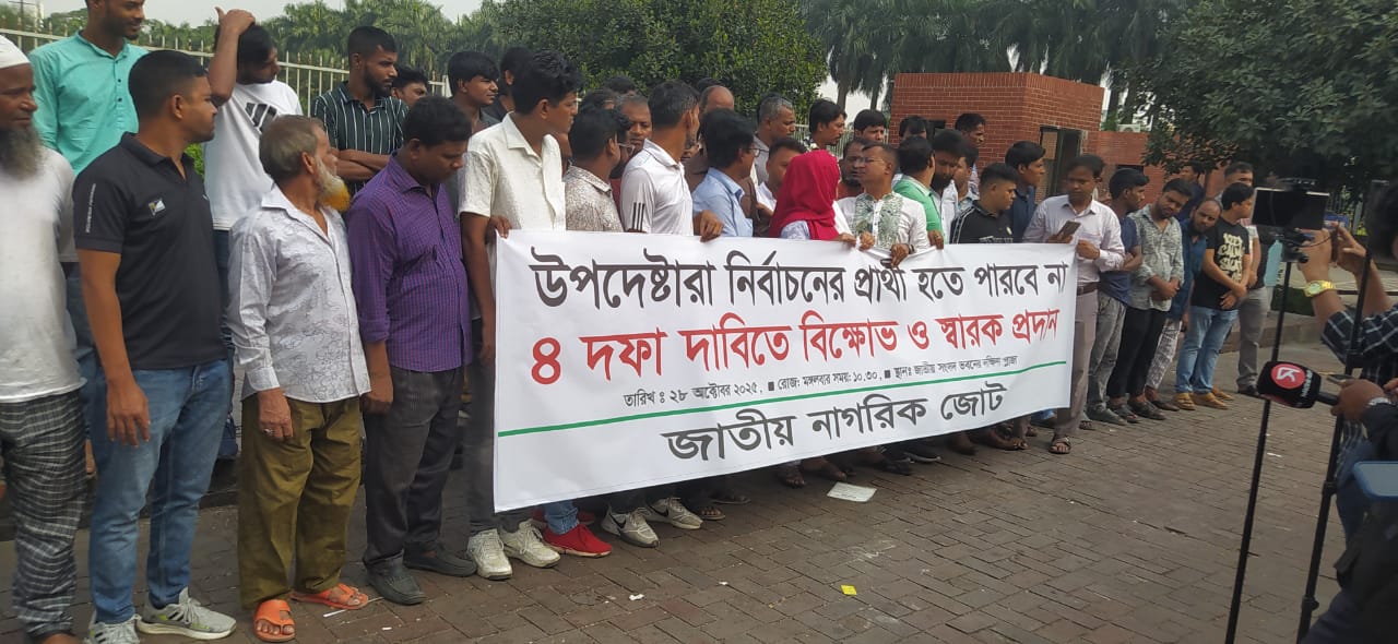 জাতীয় সংসদ ভবনের দক্ষিণ গেটে চার দফা দাবিতে মানববন্ধন ও বিক্ষোভ কর্মসূচি পালন করেছে জাতীয় নাগরিক জোট।