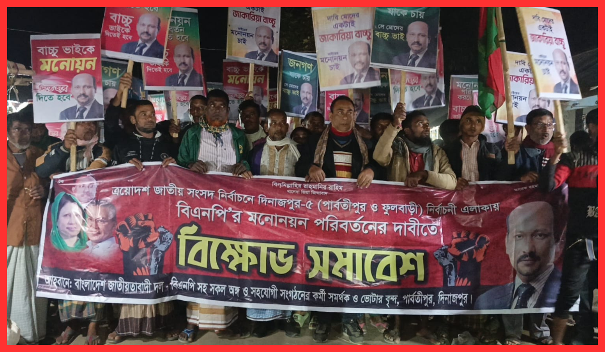 দিনাজপুর-৫: বিএনপির মনোনয়ন পরিবর্তনের দাবিতে বিক্ষোভ সমাবেশ ও প্রতিবাদ মিছিল