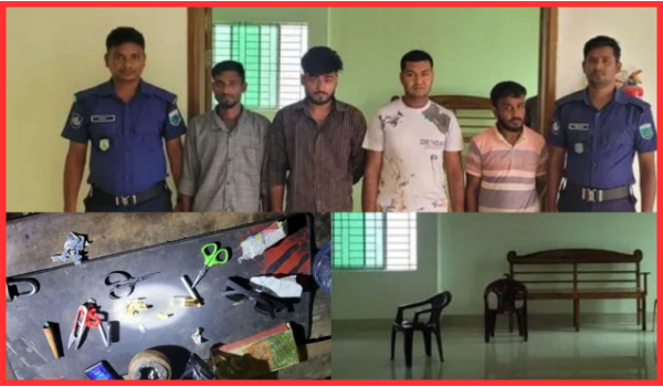 একই দিন দিবাগত রাতে পৌর এলাকার চকময়রাম বাজারে বিশেষ অভিযান চালিয়ে গাঁজা সেবনের সময় ৪ জনকে হাতেনাতে আটক করা হয়। এ সময় সেবন সামগ্রীও জব্দ করা হয়।