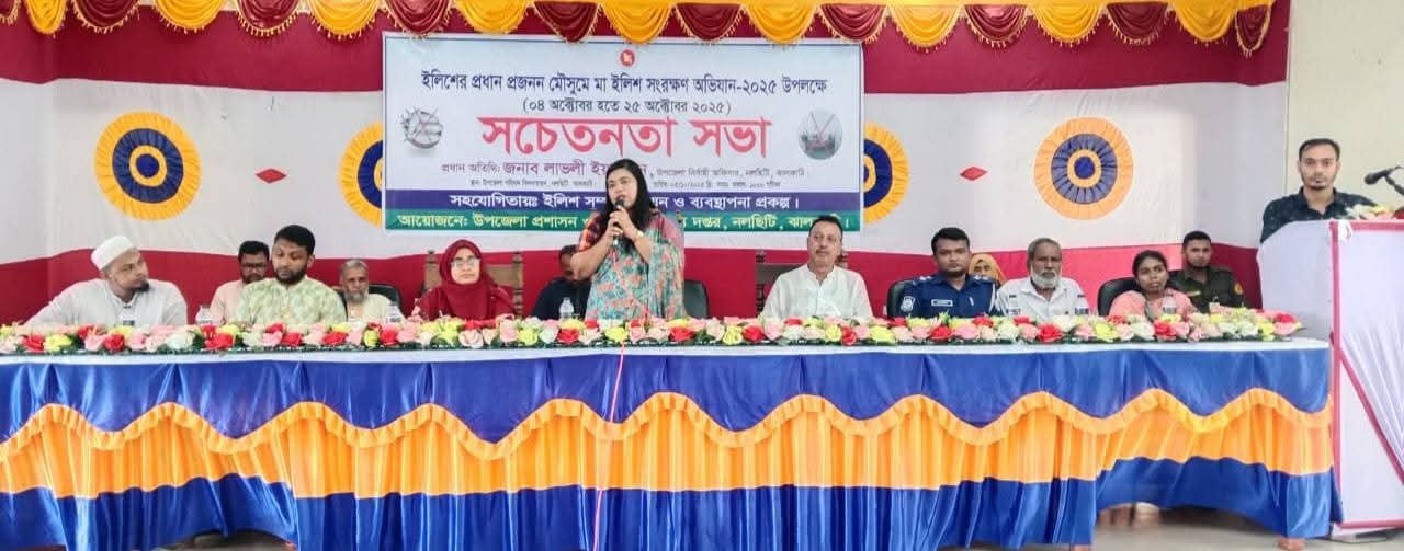 ইলিশ সম্পদ সংরক্ষণ ও ব্যবস্থাপনা প্রকল্পের সহযোগিতায় শুক্রবার ০৩ অক্টোবর-২০২৫ খ্রি,তারিখ সকাল ১০ ঘটিকায় উপজেলা পরিষদ অডিটোরিয়ামে নলছিটি উপজেলা প্রশাসন ও উপজেলা মৎস দপ্তরের আয়োজনে এ সচেতনতা সভা আয়োজন করা হয়।