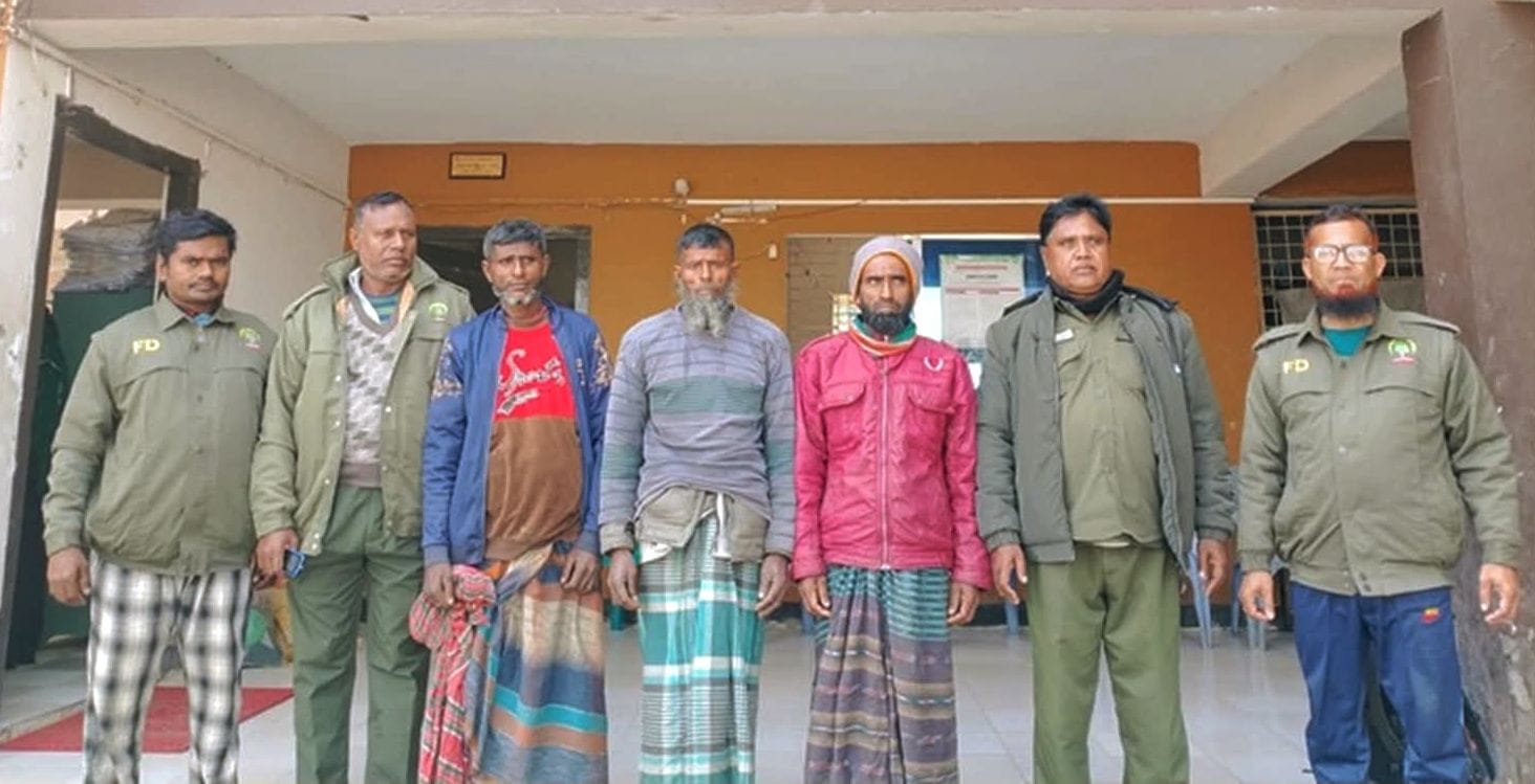 রোববার সন্ধ্যায় পশ্চিম সুন্দরবনের সাতক্ষীরা রেঞ্জের পুষ্পকাটি অভয়ারণ্যের জলঘাটা খাল থেকে তারা আটক হন। বিষয়টি নিশ্চিত করেছেন বুড়িগোয়ালিনী ফরেস্ট স্টেশনের কর্মকর্তা জিয়াউর রহমান।