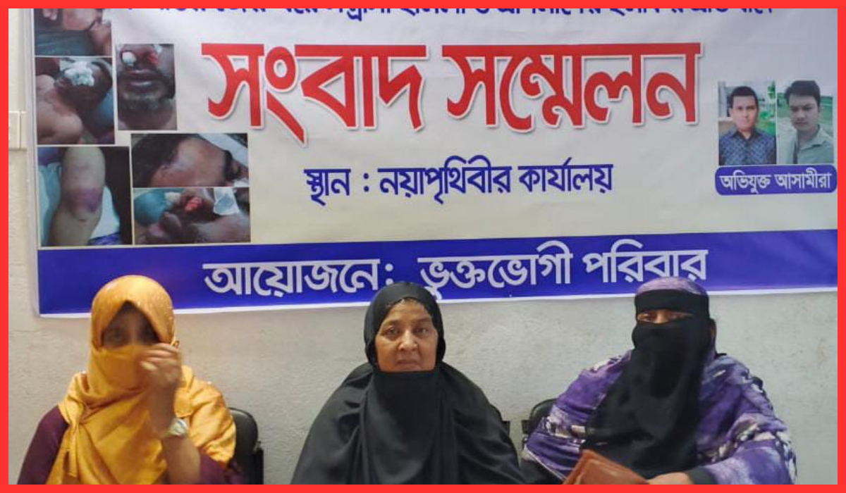 সংবাদ সম্মেলনে আহত শাহজাহানের বোন শাহিনুর, শাহনাজ, সাহিদা, নার্গিস আক্তার, মরিয়ম ইসলাম এবং মামলার বাদী শাহাদাত হোসেন উপস্থিত ছিলেন।