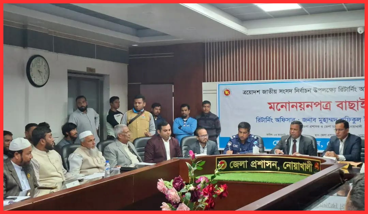 নোয়াখালীর ছয়টি সংসদীয় আসনে যাচাই-বাছাই শেষে জাতীয় পার্টি (জাপা), জাতীয় সমাজতান্ত্রিক দল (জেএসডি), ইসলামী আন্দোলন বাংলাদেশ ও স্বতন্ত্রসহ মোট ১৫ জন প্রার্থীর মনোনয়নপত্র বাতিল করা হয়েছে। একই সঙ্গে ৪৭ জন প্রার্থীর মনোনয়ন বৈধ ঘোষণা করা হয়েছে।