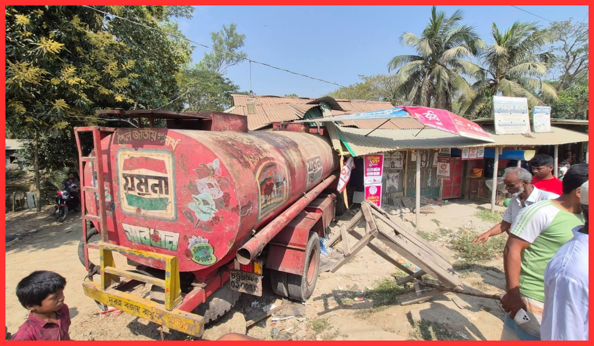 স্থানীয় সূত্রে জানা যায়, তেলের গাড়িটির চালকের অসাবধানতার কারণে এ দুর্ঘটনা ঘটে। ঘটনাস্থলেই দুইজন পথচারীর মৃত্যু হয়। আহত ব্যক্তিকে প্রথমে স্থানীয়ভাবে প্রাথমিক চিকিৎসা দেওয়া হয়। পরে তার অবস্থা আশঙ্কাজনক হওয়ায় উন্নত চিকিৎসার জন্য ঢাকায় পাঠানো হয়েছে।