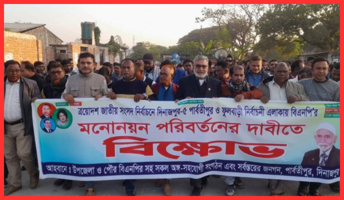 পার্বতীপুরে মনোনয়ন পরিবর্তনের দাবিতে বিএনপির বিক্ষোভ মিছিল