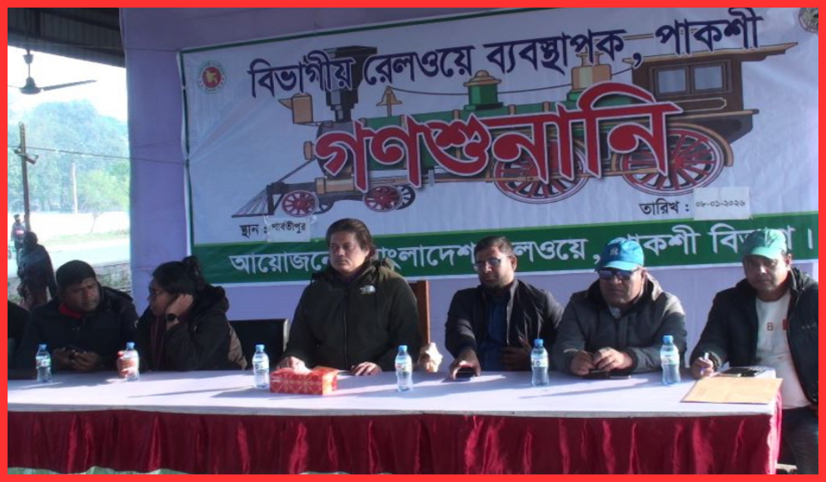 দিনাজপুরের পার্বতীপুরে রেল সেবাকে আরও আধুনিক ও যাত্রীবান্ধব করার লক্ষ্যে গণশুনানি অনুষ্ঠিত হয়েছে। বাংলাদেশ রেলওয়ের পাকশী বিভাগের উদ্যোগে বৃহস্পতিবার (০৯ জানুয়ারি) বিকেলে পার্বতীপুর জংশন রেলস্টেশনের ২ নম্বর প্ল্যাটফর্মে এ আয়োজন করা হয়।