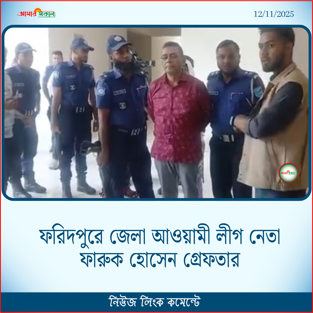 ফরিদপুরে জেলা আওয়ামী লীগ নেতা ফারুক হোসেন গ্রেফতার - আমার সকাল ২৪ |