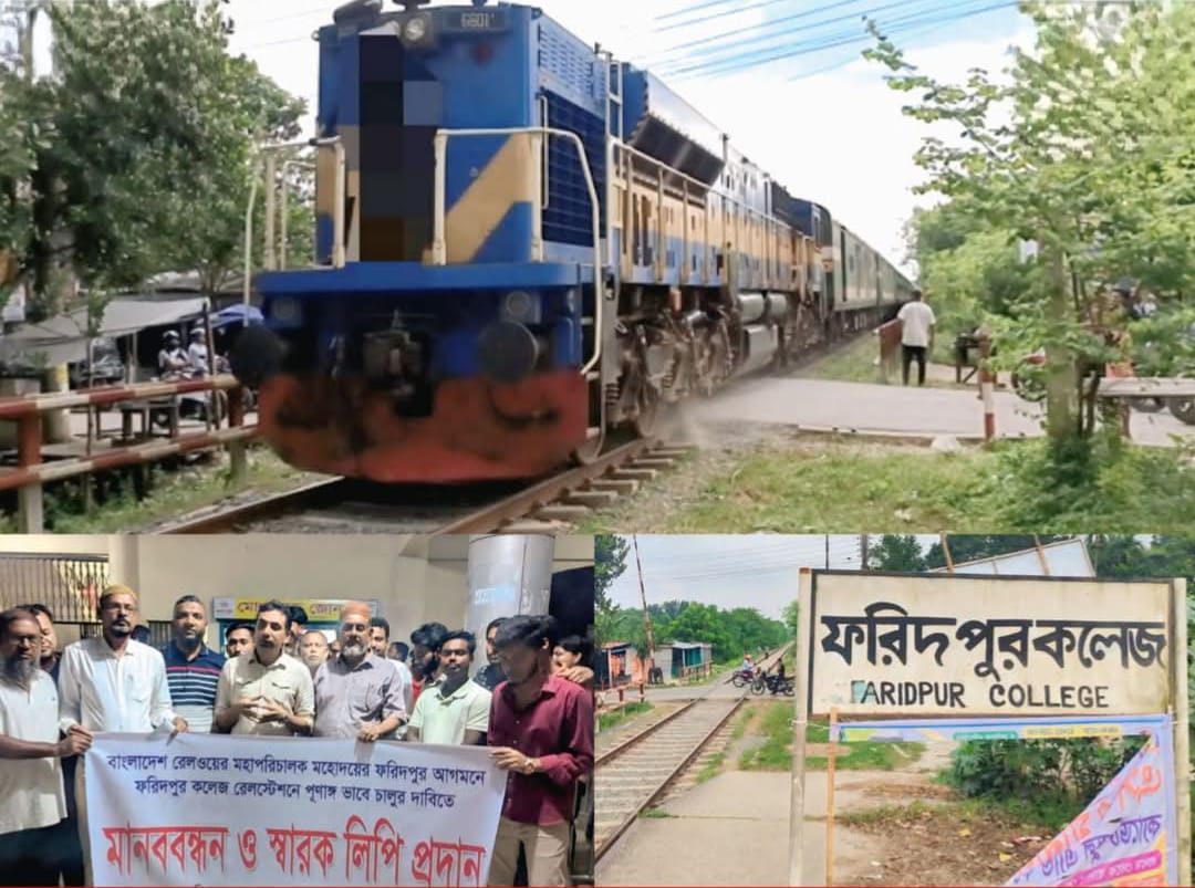 ফরিদপুর কলেজ রেলস্টেশনে ট্রেন থামানোর দাবি মানববন্ধনে