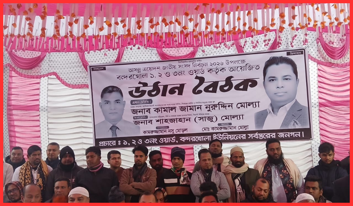 বক্তারা জানান, বন্দরখোলা এলাকা থেকে বিপুল ভোটে কামাল জামান মোল্লাকে বিজয়ী করা হবে। তাদের দাবি, এবারের নির্বাচন প্রতীকের নয়—ব্যক্তি ও যোগ্যতার ভিত্তিতে ভোট হবে। বক্তারা আরও প্রত্যাশা ব্যক্ত করেন, নির্বাচিত হলে ভবিষ্যতে তিনি মন্ত্রী হয়ে এলাকার সার্বিক উন্নয়নে ভূমিকা রাখবেন।