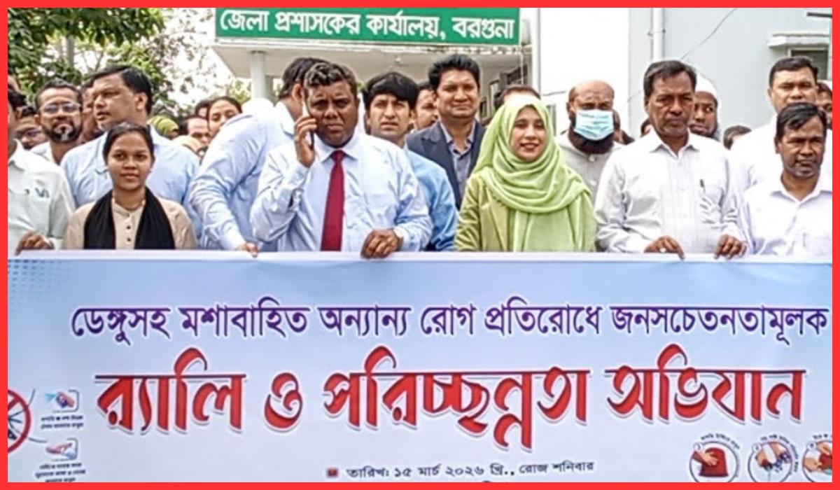 বরগুনায় ডেঙ্গু ও অন্যান্য মশাবাহিত রোগ প্রতিরোধে জনসচেতনতা বৃদ্ধি এবং পরিচ্ছন্ন পরিবেশ গড়ে তুলতে জেলা প্রশাসনের উদ্যোগে র্যালি ও কড়ইবাড়িয়া খাল পরিষ্কার-পরিচ্ছন্নতা অভিযান অনুষ্ঠিত হয়েছে।