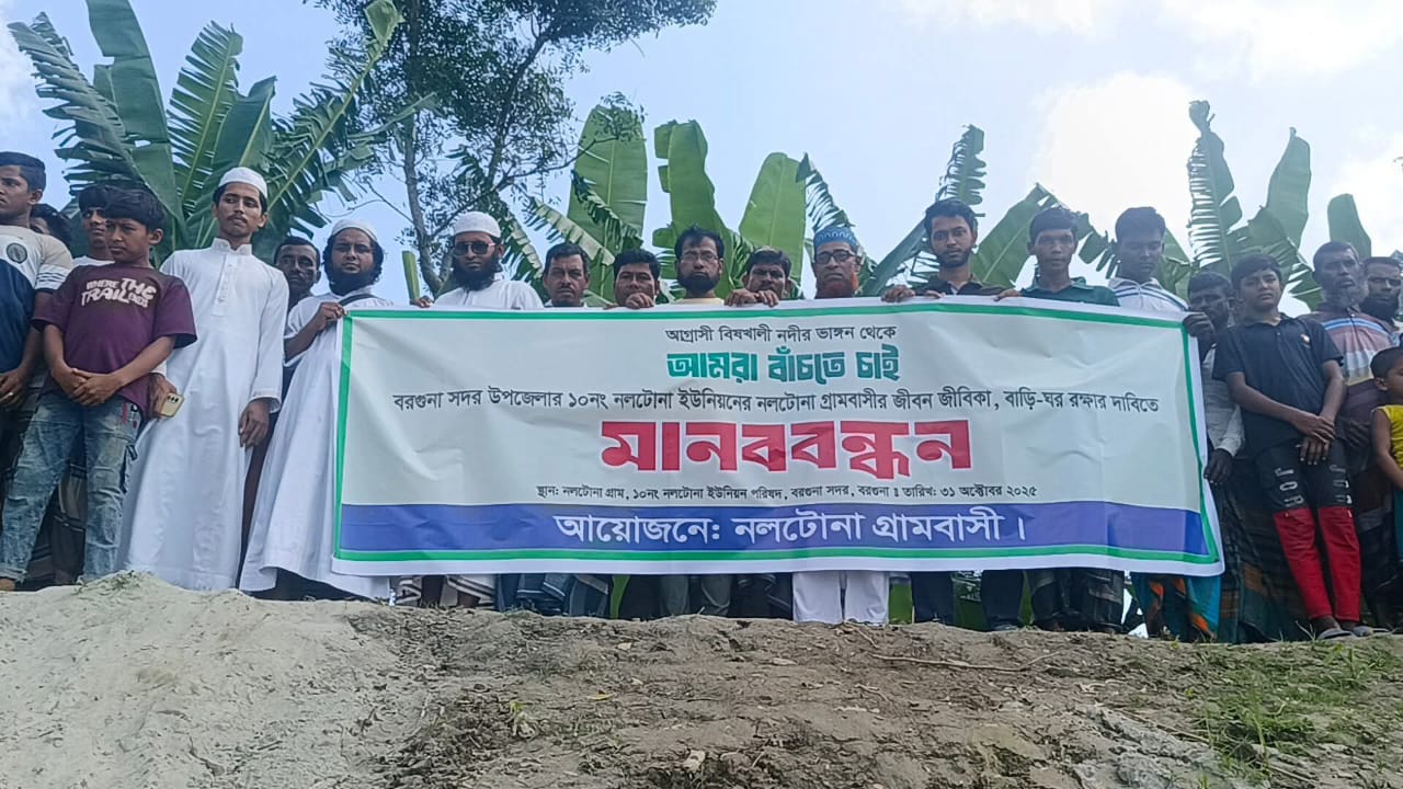 বরগুনা নদী ভাঙন রোধে মানববন্ধন