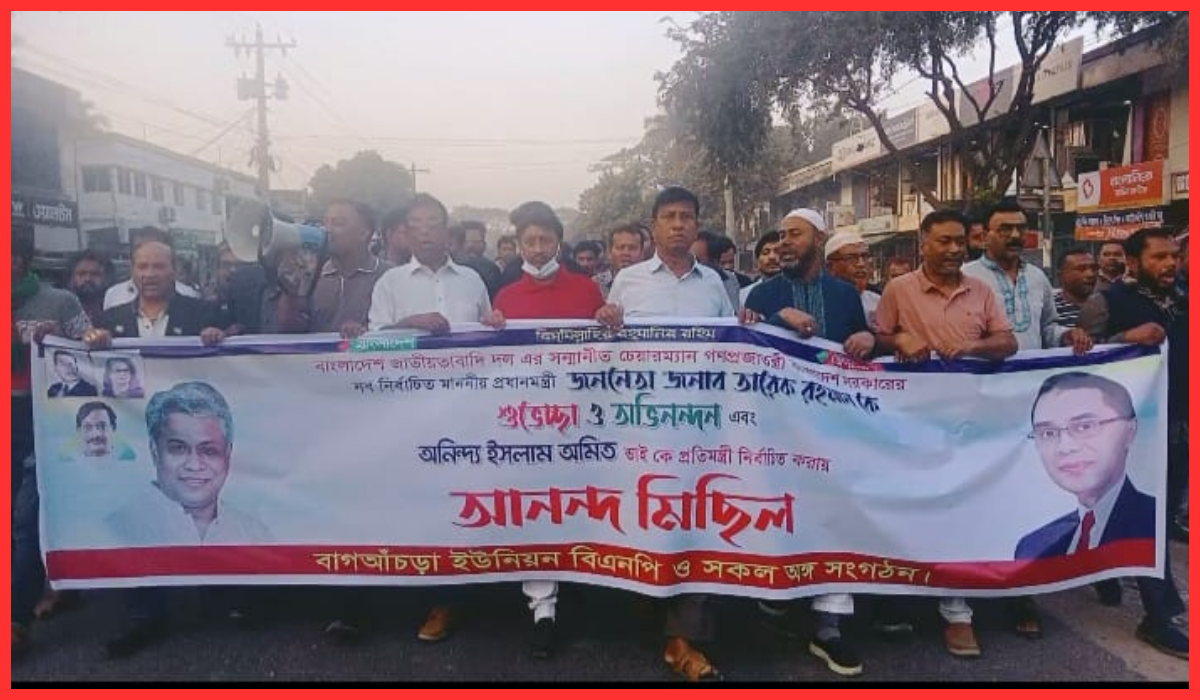 মঙ্গলবার (১৮ ফেব্রুয়ারি) বিকেলে বাগআঁচড়া ইউনিয়নের বিভিন্ন ওয়ার্ড থেকে নেতাকর্মীরা খণ্ড খণ্ড মিছিল নিয়ে বাগআঁচড়া বাজারে দলীয় কার্যালয়ের সামনে জড়ো হন। পরে কুদ্দুস আলী বিশ্বাস-এর নেতৃত্বে একটি আনন্দ মিছিল বাজারের গুরুত্বপূর্ণ সড়ক প্রদক্ষিণ শেষে সংক্ষিপ্ত সমাবেশে মিলিত হয়।