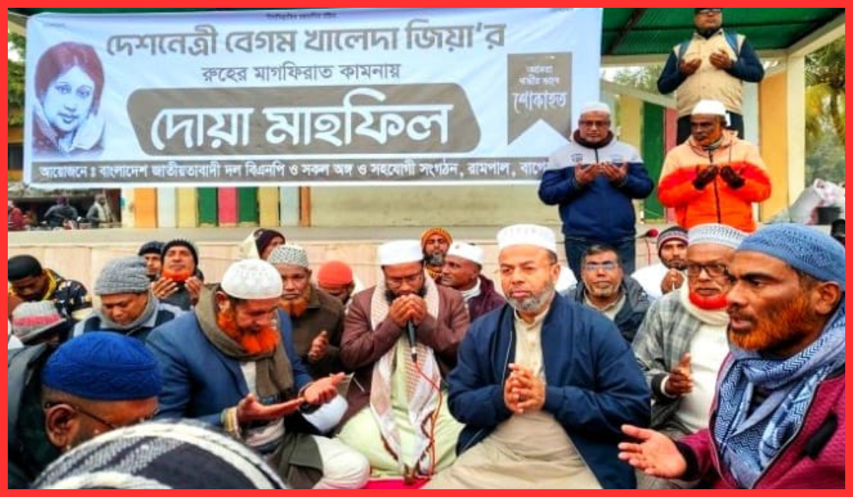 বাগেরহাটের রামপালে বেগম খালেদা জিয়ার রুহের মাগফিরাত কামনায় দোয়া মাহফিল
