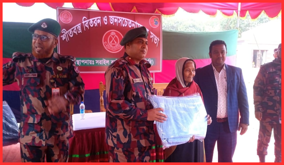 ব্রাহ্মণবাড়িয়ার বিজয়নগর সীমান্ত এলাকায় শীতার্ত ও দুঃস্থ মানুষের মধ্যে শীতবস্ত্র বিতরণ করেছে বাংলাদেশ বর্ডার গার্ড (বিজিবি)। মঙ্গলবার (৬ জানুয়ারি) সকালে সরাইল ২৫ বিজিবির উদ্যোগে বিজয়নগর কবি সানাউল হক কলেজ মাঠে ২০০ কম্বল বিতরণ করা হয়।