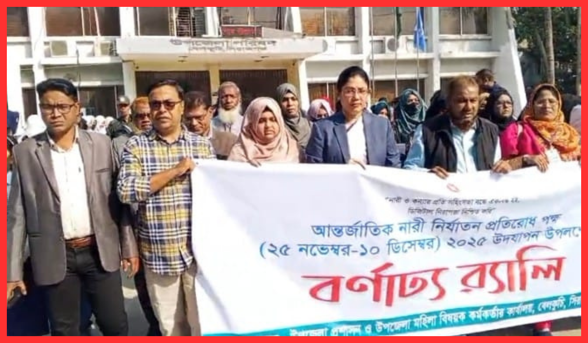 “নারী ও কন্যার প্রতি সহিংসতা বন্ধে ঐক্যবদ্ধ হই, ডিজিটাল নিরাপত্তা নিশ্চিত করি”—এই স্লোগানকে সামনে রেখে সিরাজগঞ্জের বেলকুচিতে আন্তর্জাতিক নারী নির্যাতন প্রতিরোধ দিবস পালন করা হয়েছে। দিবসটি উপলক্ষে জাতীয় সংগীত পরিবেশন ও জাতীয় পতাকা উত্তোলনের মাধ্যমে দিনের কর্মসূচির সূচনা করা হয়।