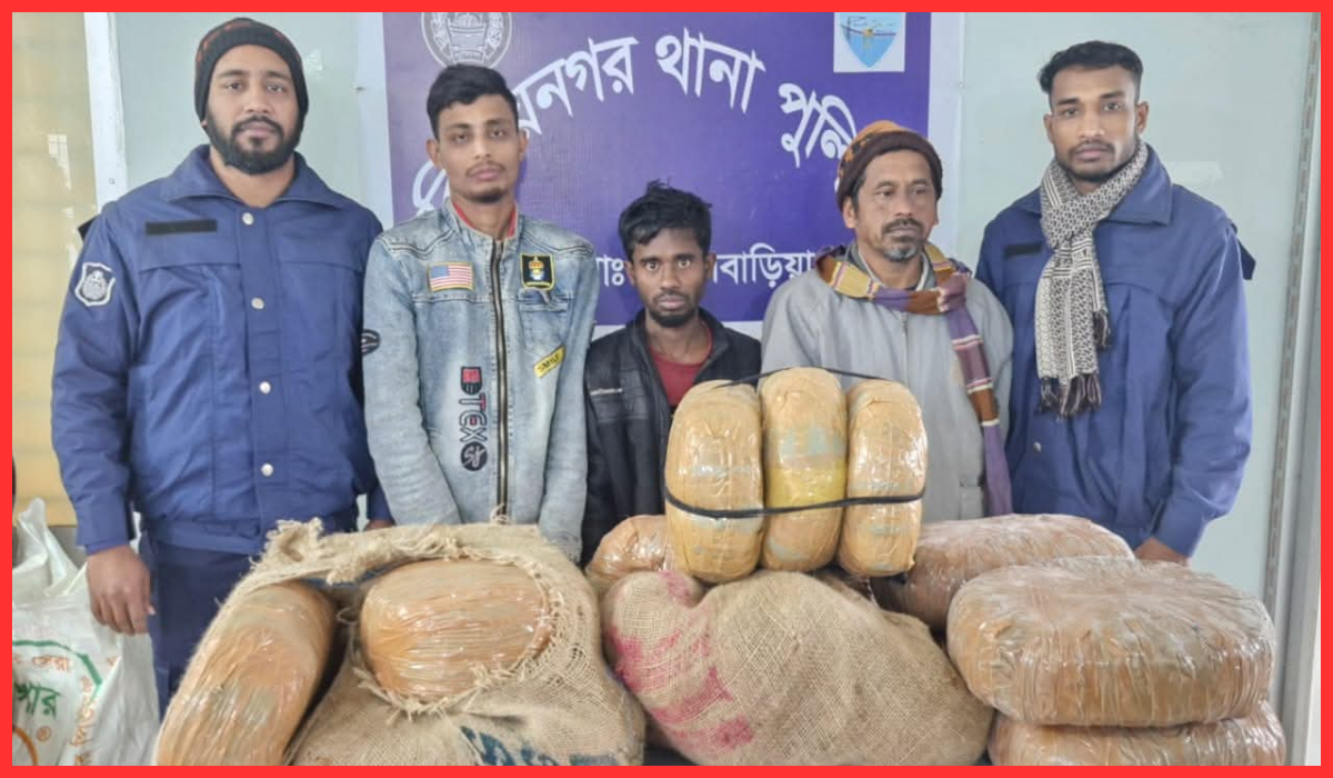 ব্রাহ্মণবাড়িয়ায় বিজয়নগর পুলিশের অভিযানে ৩০ কেজি গাঁজা জব্দ, ৩ জন গ্রেফতার