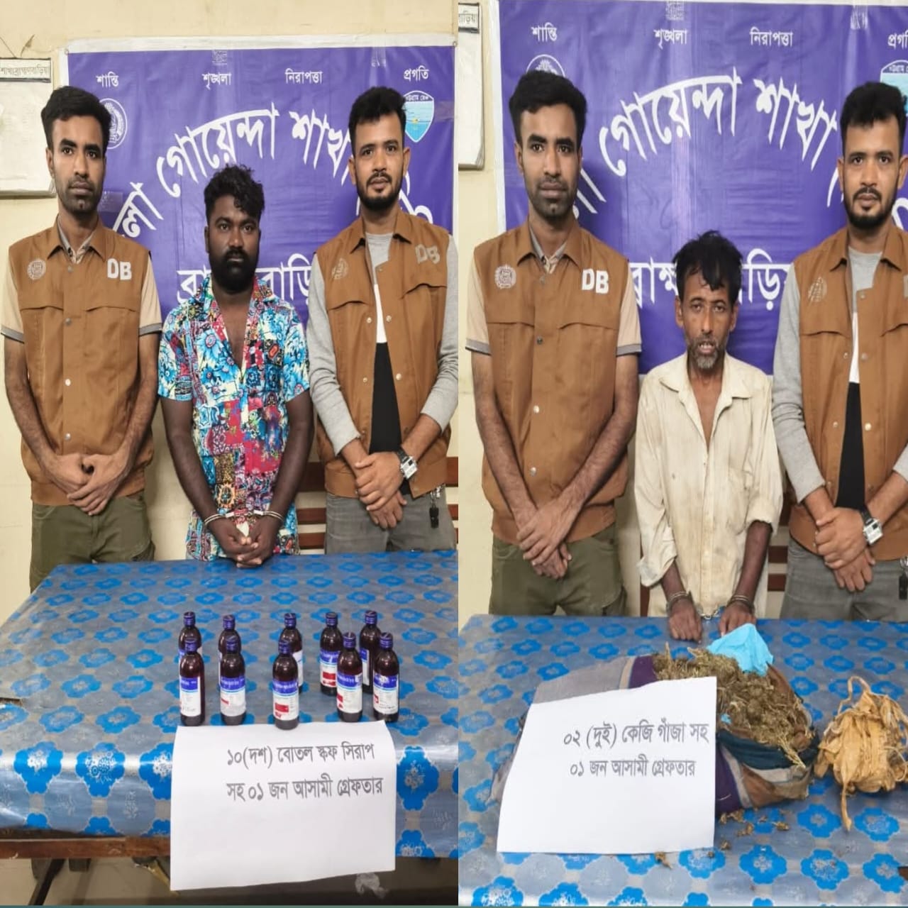 ব্রাহ্মণবাড়িয়া গোয়েন্দা শাখা (ডিবি) পুলিশ কর্তৃক গাঁজা ও স্কফ সিরাপ সহ আটক ০২