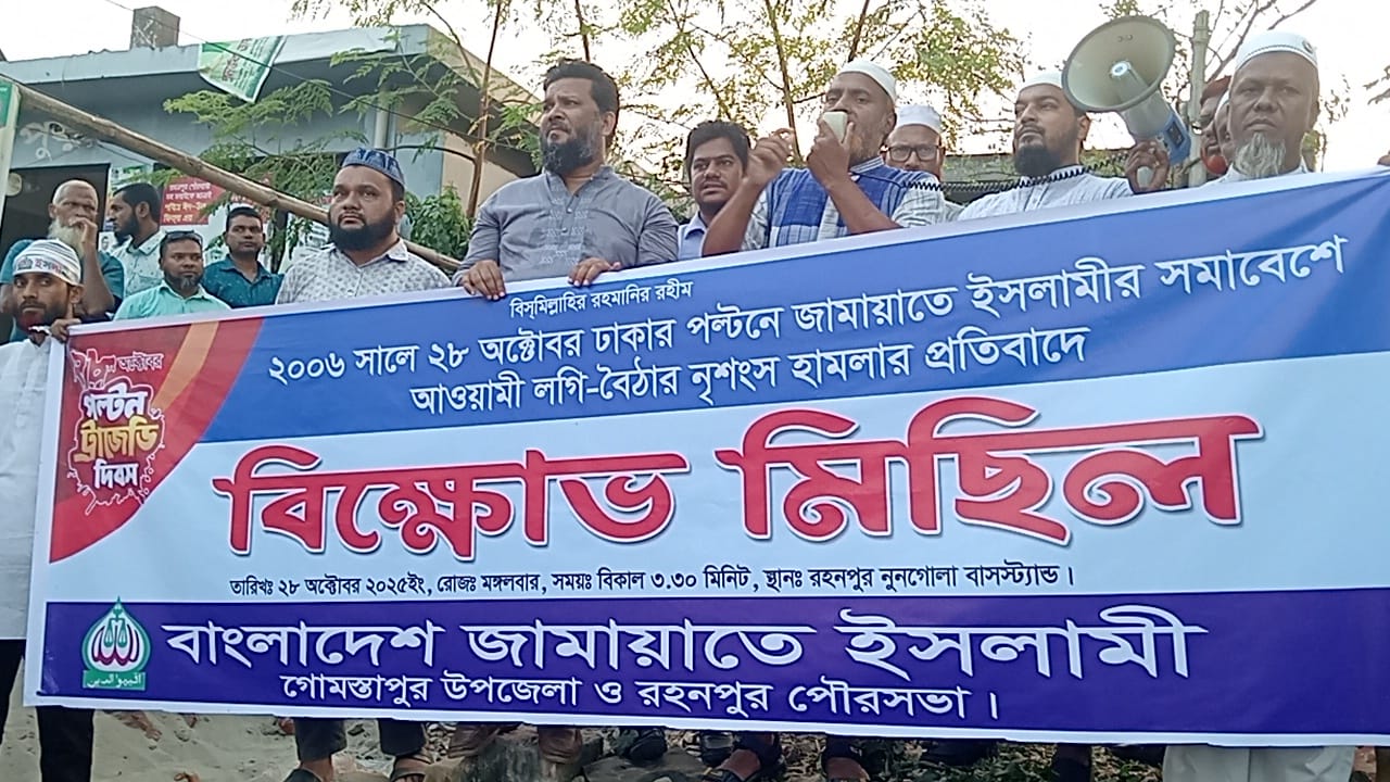 পল্টন ট্র্যাজেডি দিবস উপলক্ষে রহনপুরে জামায়াতের বিক্ষোভ মিছিল