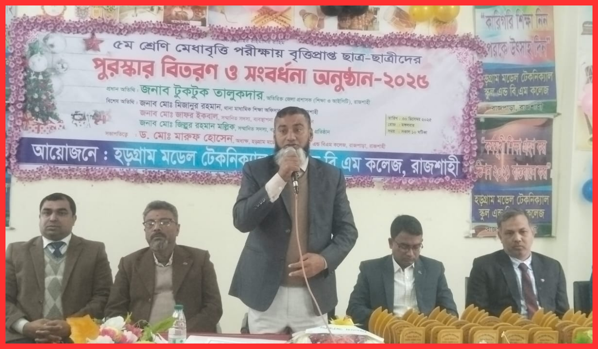 মঙ্গলবার (৩০ ডিসেম্বর ২০২৫) সকাল ১১টায় হাড়গ্রাম মডেল টেকনিক্যাল স্কুল এন্ড বিএম কলেজের অডিটরিয়ামে আয়োজিত এ অনুষ্ঠানে বৃত্তিপ্রাপ্ত ছাত্র-ছাত্রীদের হাতে সার্টিফিকেট ও ক্রেস্ট তুলে দেওয়া হয়। একই সঙ্গে প্রথম, দ্বিতীয় ও তৃতীয় স্থান অর্জনকারীদের আর্থিক অনুদান প্রদান করা হয়।