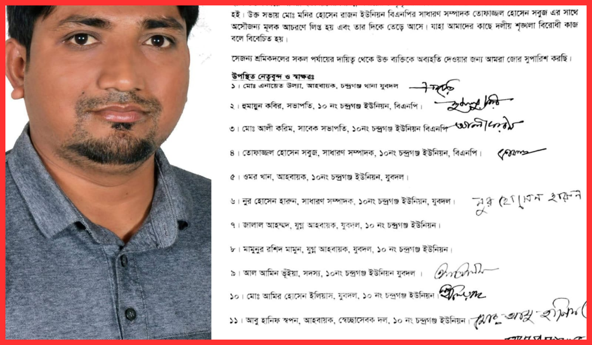 লক্ষ্মীপুর চন্দ্রগঞ্জে শ্রমিকদল নেতার বিতর্কিত কর্মকাণ্ডে ক্ষোভ, বহিষ্কারের দাবি