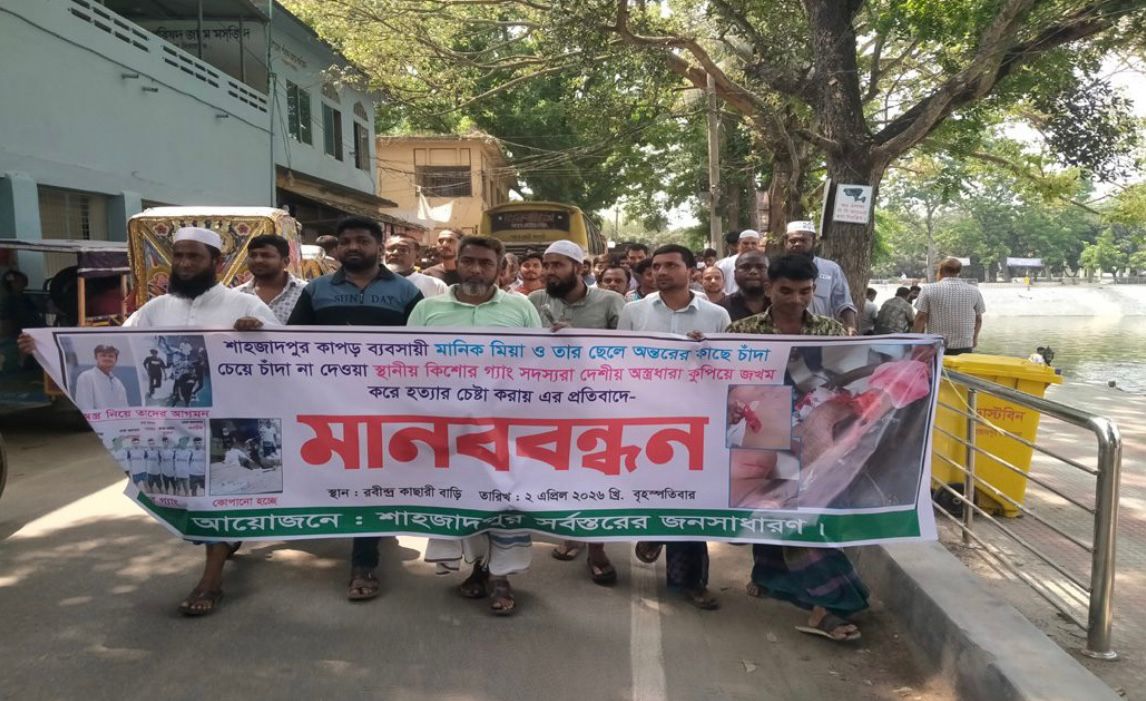 শাহজাদপুরে চাঁদাবাজির প্রতিবাদে মানববন্ধন