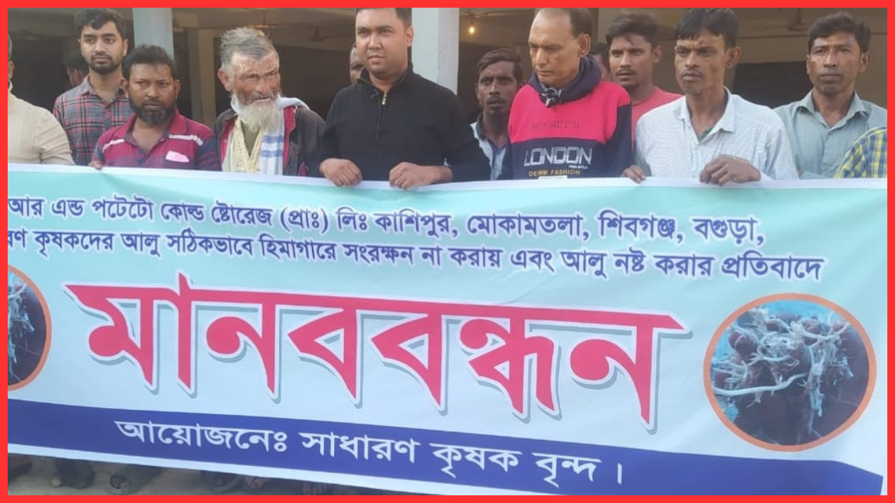 শিবগঞ্জে আলু নষ্টের প্রতিবাদে কৃষকদের মানববন্ধন