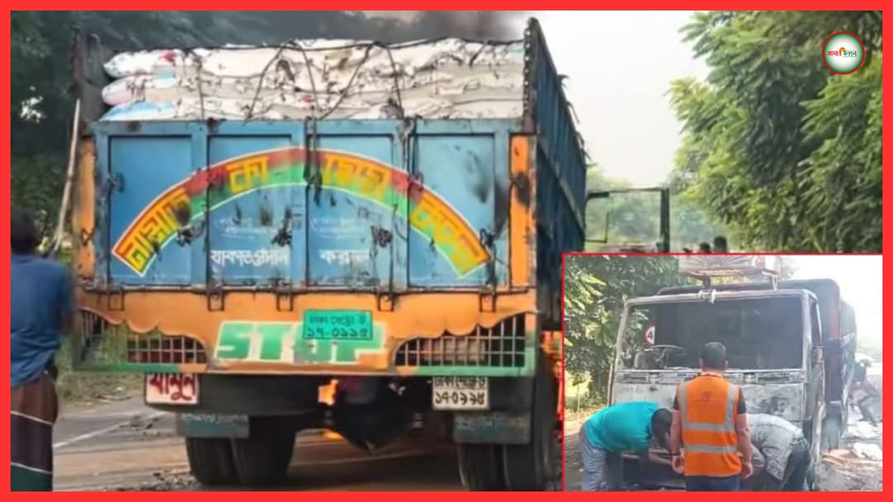 মাদারীপুরের শিবচর উপজেলার সীমানা এলাকায় বৃহস্পতিবার সকাল সাড়ে ৮টার দিকে ঢাকা-ভাঙ্গা এক্সপ্রেসওয়েতে চিনিবোঝাই একটি ট্রাকে আগুন ধরিয়ে দেয় দুর্বৃত্তরা। খবর পেয়ে ঘটনাস্থলে পৌঁছে হাইওয়ে পুলিশ পরিস্থিতি নিয়ন্ত্রণে আনে।
