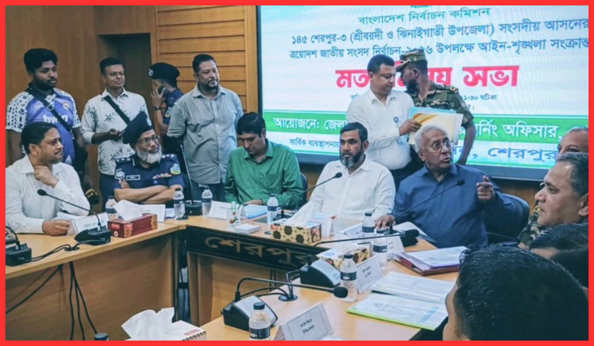 শেরপুরে নির্বাচন কমিশনারের সভায় সাংবাদিকদের প্রবেশে বাধা, খবর বয়কটের ঘোষণা