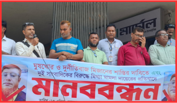 এ সময় তারা মিজানুর রহমানের বিরুদ্ধে ওঠা অভিযোগের তদন্ত, সংশ্লিষ্টদের চিহ্নিতকরণ এবং জেলা প্রশাসনের পক্ষ থেকে জবাবদিহিতা নিশ্চিত করার দাবি জানান। পাশাপাশি সাংবাদিকদের বিরুদ্ধে দায়ের করা মিথ্যা ও হয়রানিমূলক মামলা দ্রুত প্রত্যাহারের আহ্বান জানান।