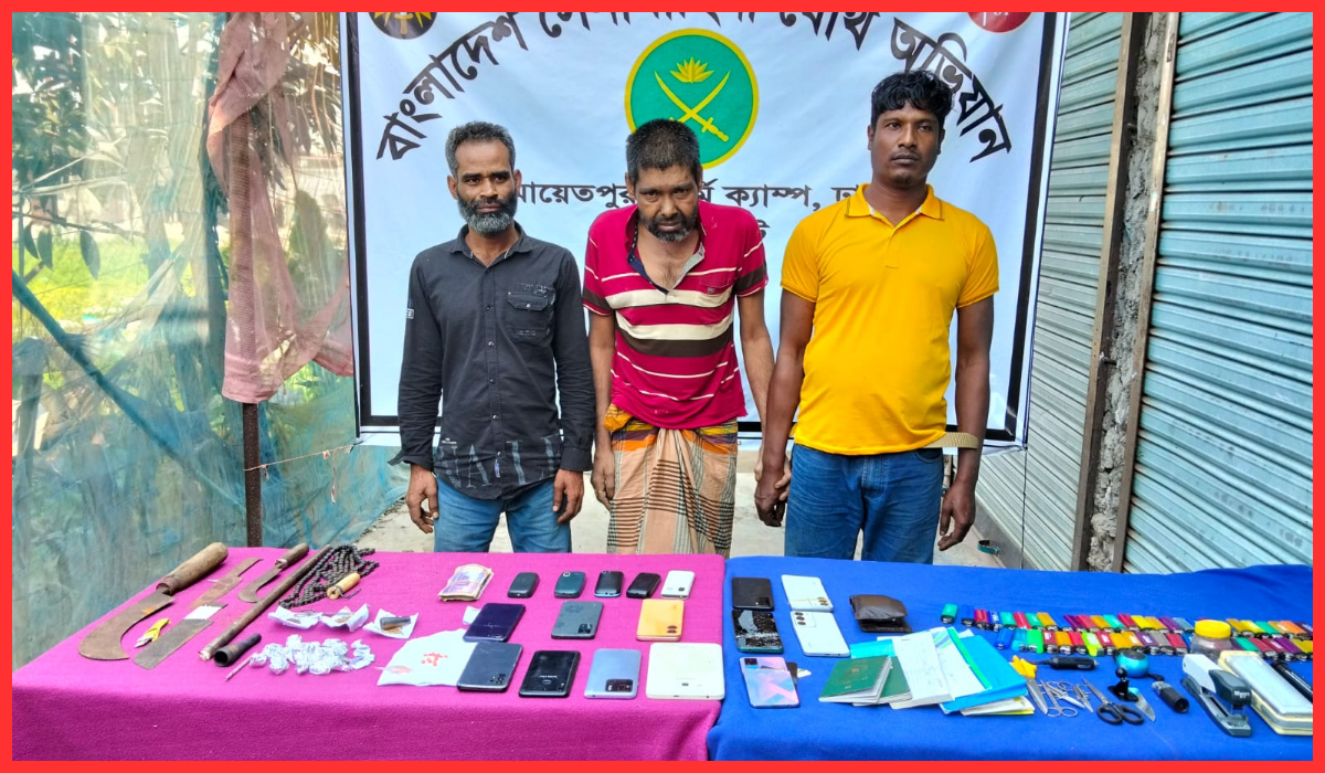 বৃহস্পতিবার (৫ ফেব্রুয়ারি ২০২৬) সকাল আনুমানিক ১১টা ৩০ মিনিট থেকে দুপুর ১টা পর্যন্ত হেমায়েতপুর আর্মি ক্যাম্পের একটি নিয়মিত টহল দল রাজফুলবাড়িয়া এলাকায় অভিযান পরিচালনা করে। এ সময় তেঁতুলঝোড়া সরকারি প্রাথমিক বিদ্যালয়ের নিকট তিনজন ব্যক্তিকে গাঁজা সেবনরত অবস্থায় দেখতে পেয়ে তাদের আটক করা হয়। পরে তল্লাশি চালিয়ে তাদের কাছ থেকে ইয়াবা ট্যাবলেট ও গাঁজা উদ্ধার করা হয়।