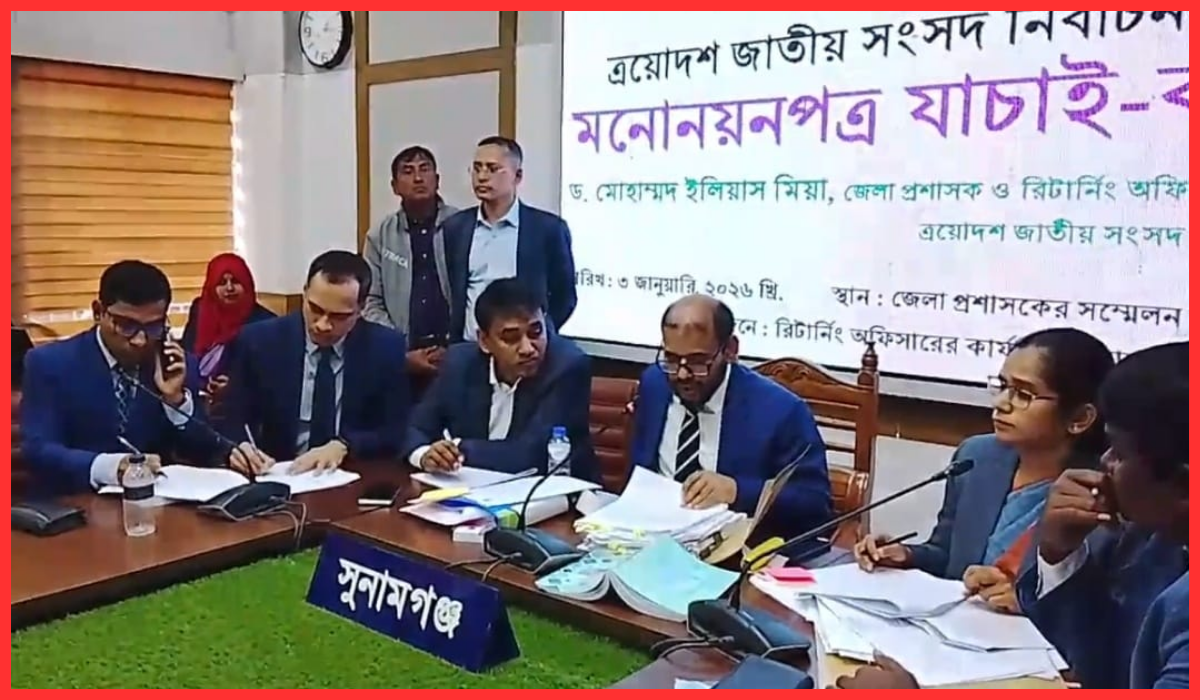 শনিবার (৩ জানুয়ারি) দুপুরে সুনামগঞ্জ জেলা প্রশাসকের সম্মেলন কক্ষে জেলা রিটার্নিং কর্মকর্তা মনোনয়নপত্র যাচাই-বাছাই শেষে তাদের বৈধ ঘোষণা করেন।