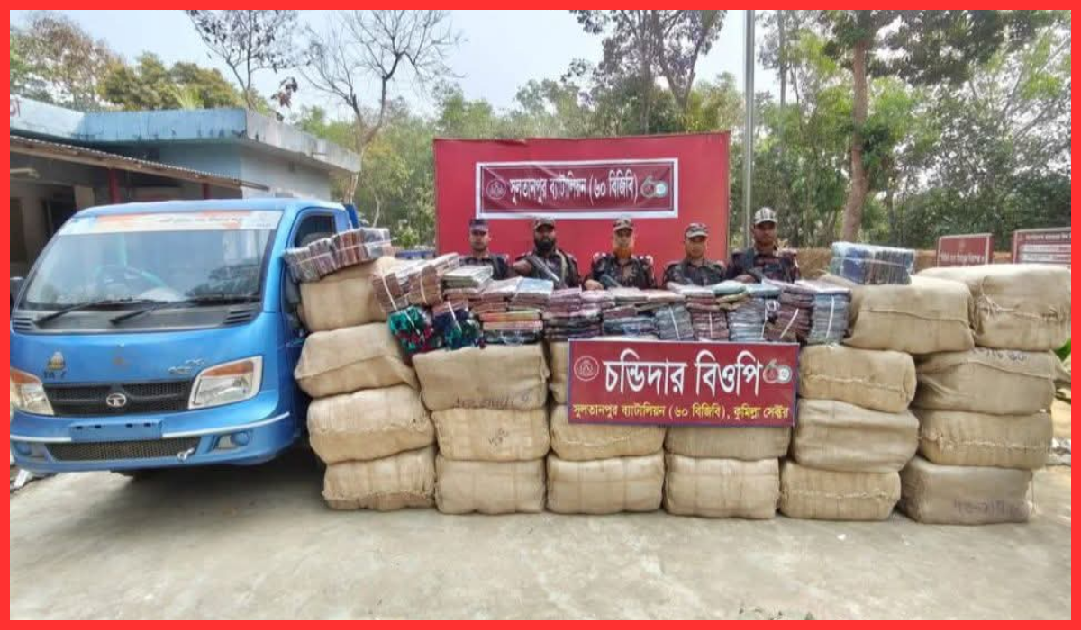 মস্ত মিয়া, বিশেষ প্রতিনিধি জানান, আজ বিকাল ৪.৪০ ঘটিকায় সুলতানপুর ব্যাটালিয়নের চন্ডিদ্বার বিওপির টহলদল চোরাচালান বিরোধী বিশেষ অভিযান পরিচালনা করে। অভিযানকালে কসবা উপজেলার সীমান্ত পিলার-২০৩১/এম থেকে আনুমানিক ১৫০ গজ বাংলাদেশের অভ্যন্তরে গোসাইপুর এলাকা থেকে ভারতীয় ১৯৩০ পিস শাড়িসহ ১টি পিকআপ জব্দ করা হয়।
